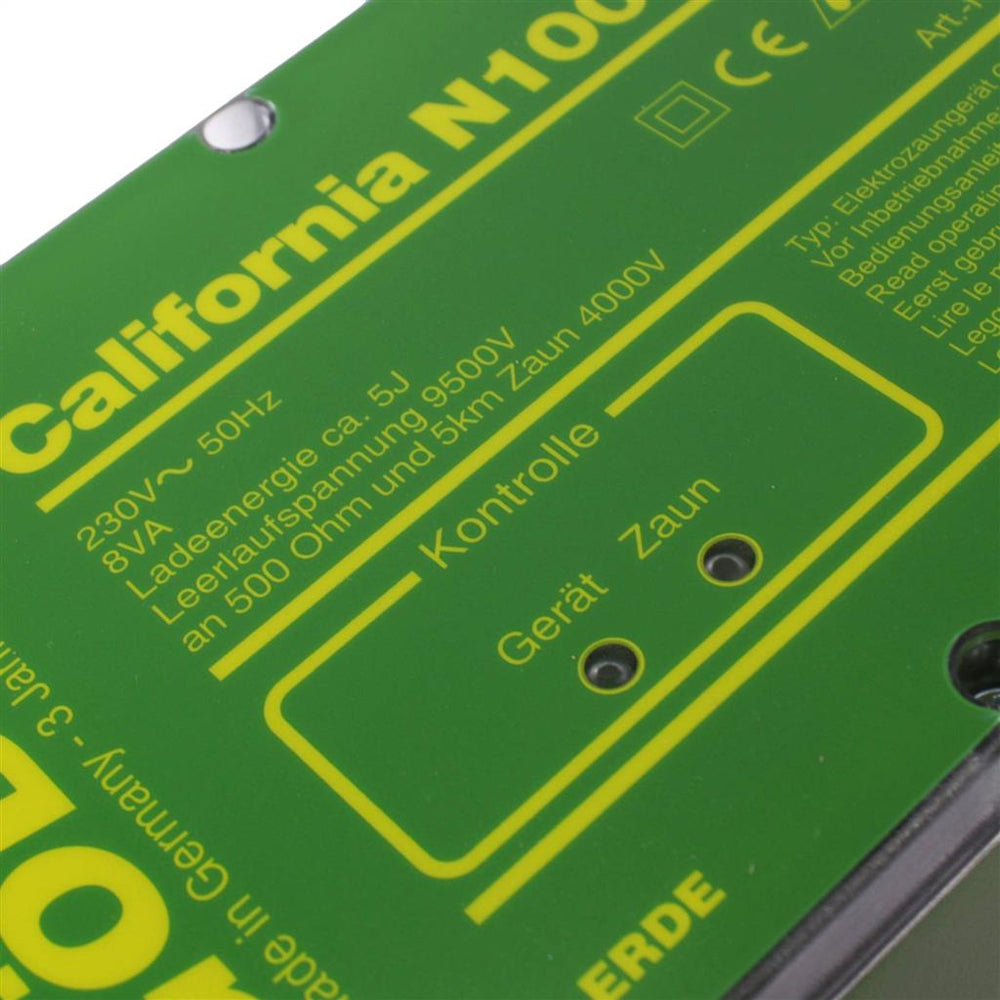 Das Weidezaungerät 230v »California N10000« (230 Volt, 4,00 Joule) ist für Ihren Weidezaun bis 50km Länge geeignet. Das Weidezaungerät California N10000 ist wartungsfrei, vollelektronisch geschaltet und damit universell bei Weidezäunen einsetzbar. Die California Weidezaungeräte Familie besticht durch preiswerte TOP Leistung mit CE-Zeichen. Das Weidezaungerät California N10000 liefert 4,00 Joule Impulsschlagstärke und wir empfehlen mit dem Gerät Weidezäune von bis zu 50km länge zu betreiben. Die Lieferung des Weidezaungerätes erfolgt ohne Weidezaunkabel oder Erdkabel, schauen Sie sich als Zuleitung zum Weidezaun gerne unser Untergrundkabel mit der Art. Nr. 10520 an.