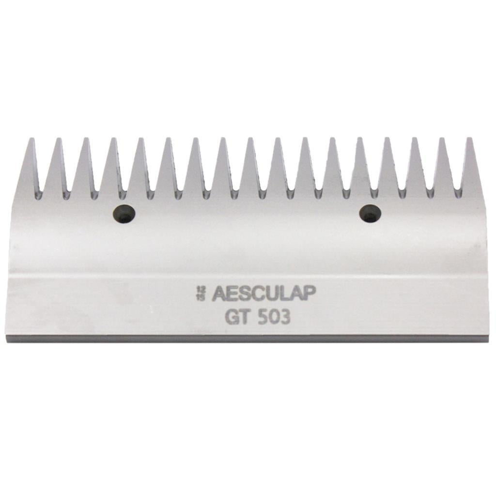 Der Scherkamm »Aesculap GT 503« (obere Schneidplatte 17 Zähne) ist geeignet für Rinder, feinwollige Schafe und Einzelschafe