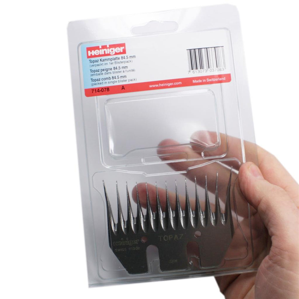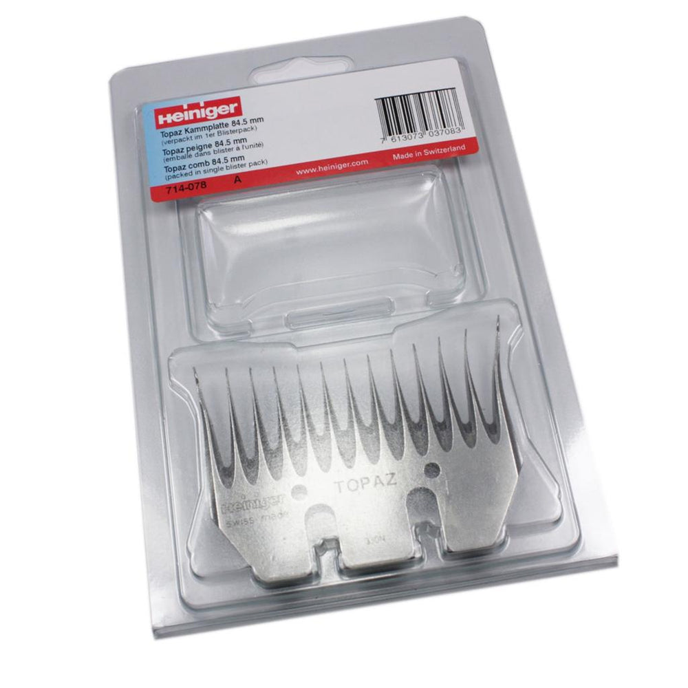 Heiniger Topaz 714-078 Schermesser 84,5mm. Für PROFI Scherer produzierte Heiniger Universal Schermesser. Für alle Wolltypen und Schurbedingungen. Die aus Spezialstahl gefertigten Schermesser haben eine lange Haltbarkeit. Nachschliff ist mit diesen Schermessern deshalb mehrmals möglich.