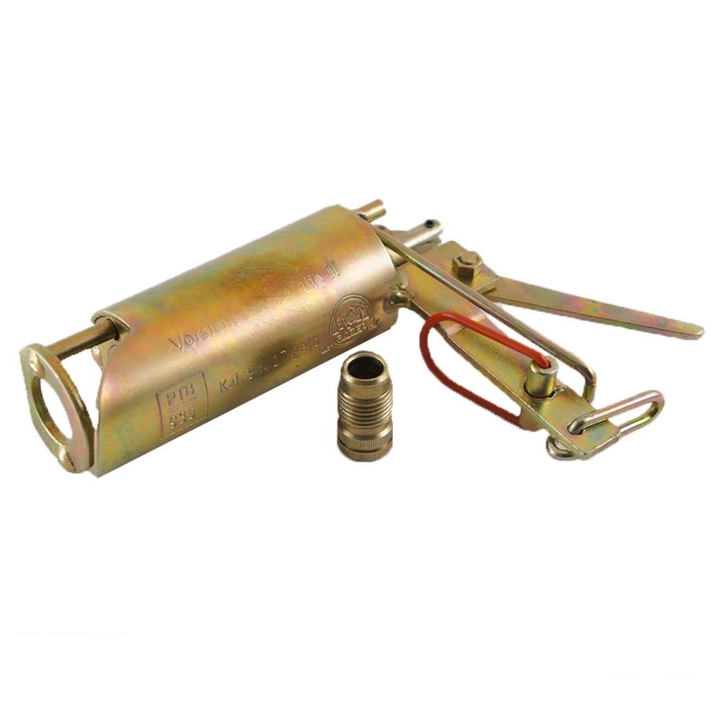 Das Wühlmausschussgerät »Classic« wird OHNE die Schussfallen-Spezialpatronen (Kaliber 9 x 17) geliefert. Das Schussgerät gegen Wühlmäuse gehört zu den wirkungsvollsten Mitteln, um die lästigen Nager schnell aus dem Garten, Beet und Grundstück zu bekommen. Einfach im Gebrauch und stark in der Wirkung sind unsere Wühlmausschussgeräte selbst durch mehrere Zentimeter Erdreich noch erfolgreich. Genutzt wird eine Spezialpatrone Kaliber 9 x 17 (gelb).