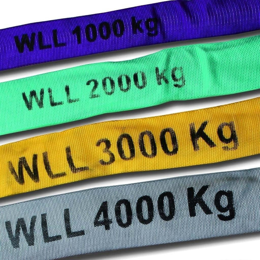 Rundschlinge »1t - 4t« Anschlagmittel, hebt, zieht mit Längen von 2m-6m. Rundschlingen sind doppelt ummantelt, zum Heben jeglicher Materialien, einsetzbar bei Haus und Hof, im Wald und sonstigen Bereichen. GS geprüft nach DIN EN 1492-2.