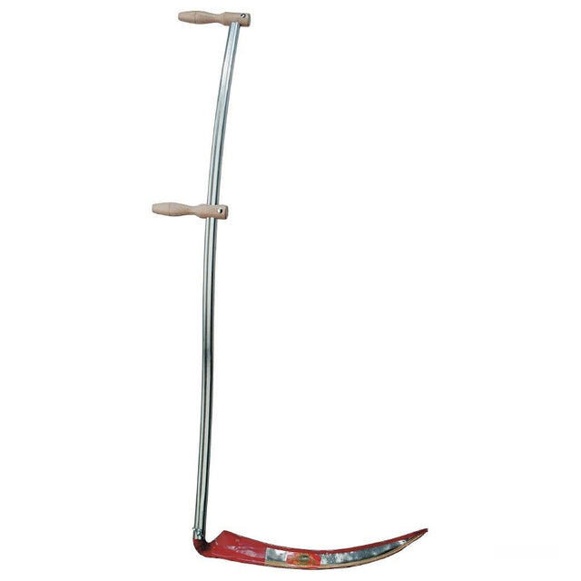 Die Klappsense »Classic« zum scheren & stutzen. Der Sensenbaum ist verzinkt, chromatisiert, 150cm lang und mit 2 verstellbaren Holzgriffen ausgestattet. Die Klappsense ist fertig montiert mit einer 60cm Sense. Das Sensenblatt der Klappsense ist mit einem Schneidschutz gesichert. Zum ausklappen der Sense wird die Flügelmutter gelöst, das Blatt in die passende Position gehoben und wieder festgezogen. (es wird kein Sensenring benötigt.)