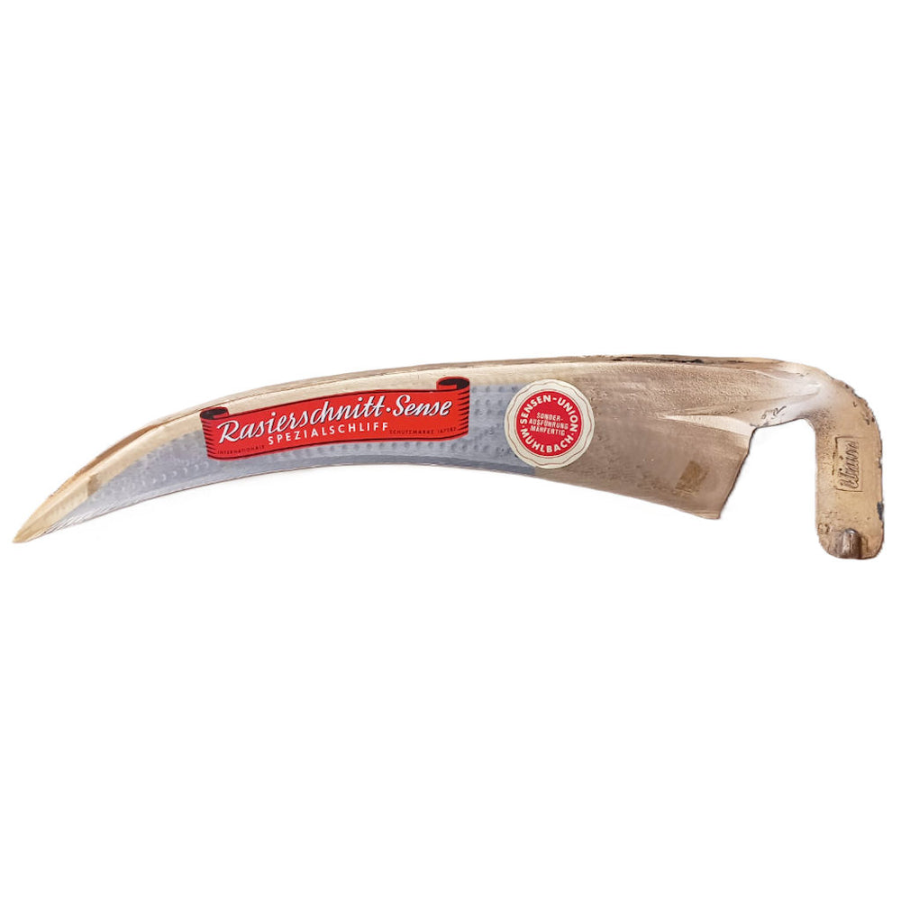 Die Sense »Rasierschnitt« TOP gedengelt, mit Plastikschneidschutz ist 70cm breit. Mähfertig gedengelt, mit Plastikschneidschutz, ohne Stiel.