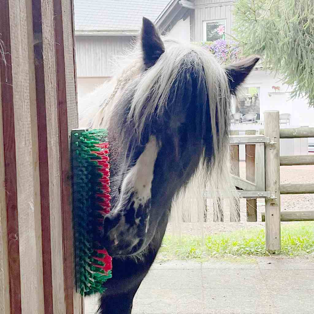 Aufgrund der verschiedensten Montagemöglichkeiten ist die Kratzbürste vielseitig an Wänden, Ecken, Aufstallungen oder Pfählen zu installieren. Dank der tief eingesetzten Löcher kann sich kein Tier versehentlich verletzen. Der stabile und langlebige Grundkörper der Bürste garantiert eine lange Lebensdauer, selbst bei häufigem Einsatz. Sie können sich darauf verlassen, dass diese Bürste auch den Herausforderungen des täglichen Gebrauchs standhält.