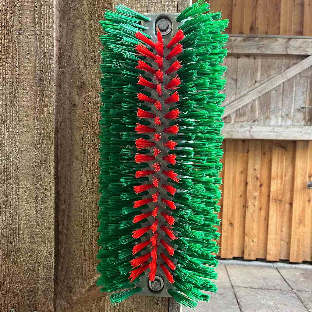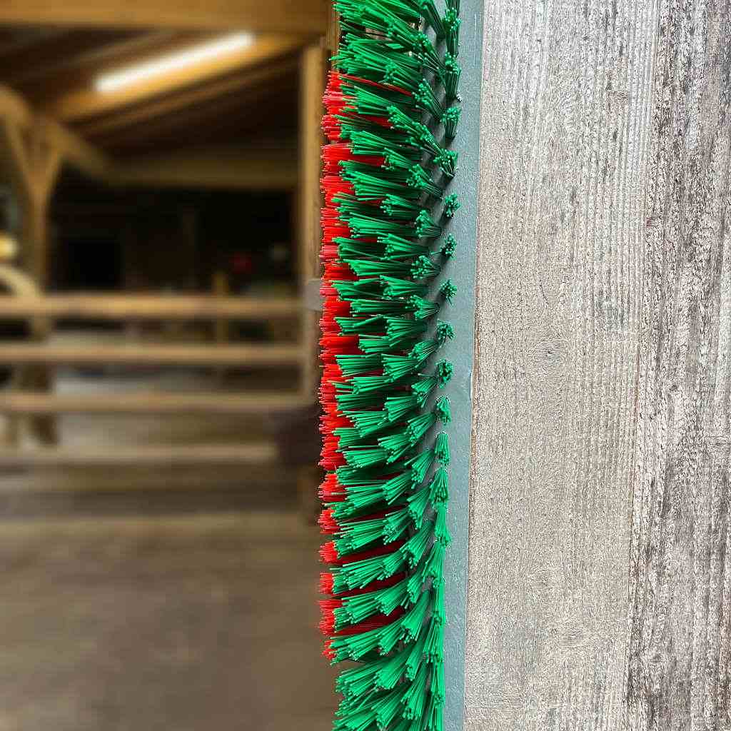 Entdecken Sie die perfekte Lösung für die Fellreinigung Ihrer Tiere mit unserer neuen halbrunden Viehbürste »Universal« in rot/grün! Diese innovative Bürste wurde speziell entwickelt, um die Fellreinigung Ihres Viehs nicht nur effektiv, sondern auch angenehm für Ihre Tiere zu gestalten. Die neue halbrunde Kratzbürste »Universal« sorgt für die gründliche und sanfte Reinigung und Pflege des Fells, vor allem im Kopf- & Halsbereich. Die einfache und robuste Scheuermöglichkeit ist für Rinder, Kälber, Pferde, Ziegen, Schafe und viele weitere Tierarten geeignet.