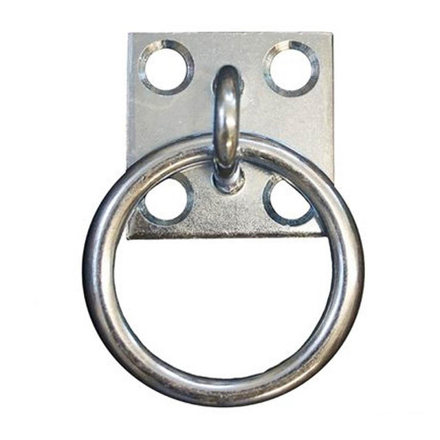 Die Bodenplatte »Classic« für Anbindung (bodenbefestigt) hat einen beweglichen Ring (Durchmesser ca. 5,5cm) und ist aus verzinktem Stahl.