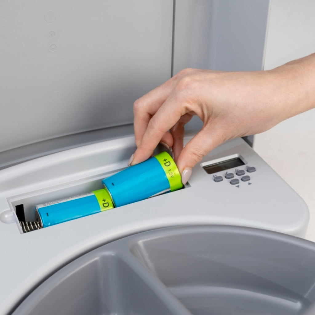 Programmieren Sie den Katzenfutterautomat je nach Bedarf auf feste Nahrungszyklen für Ihr Tier / Ihre Tiere.
