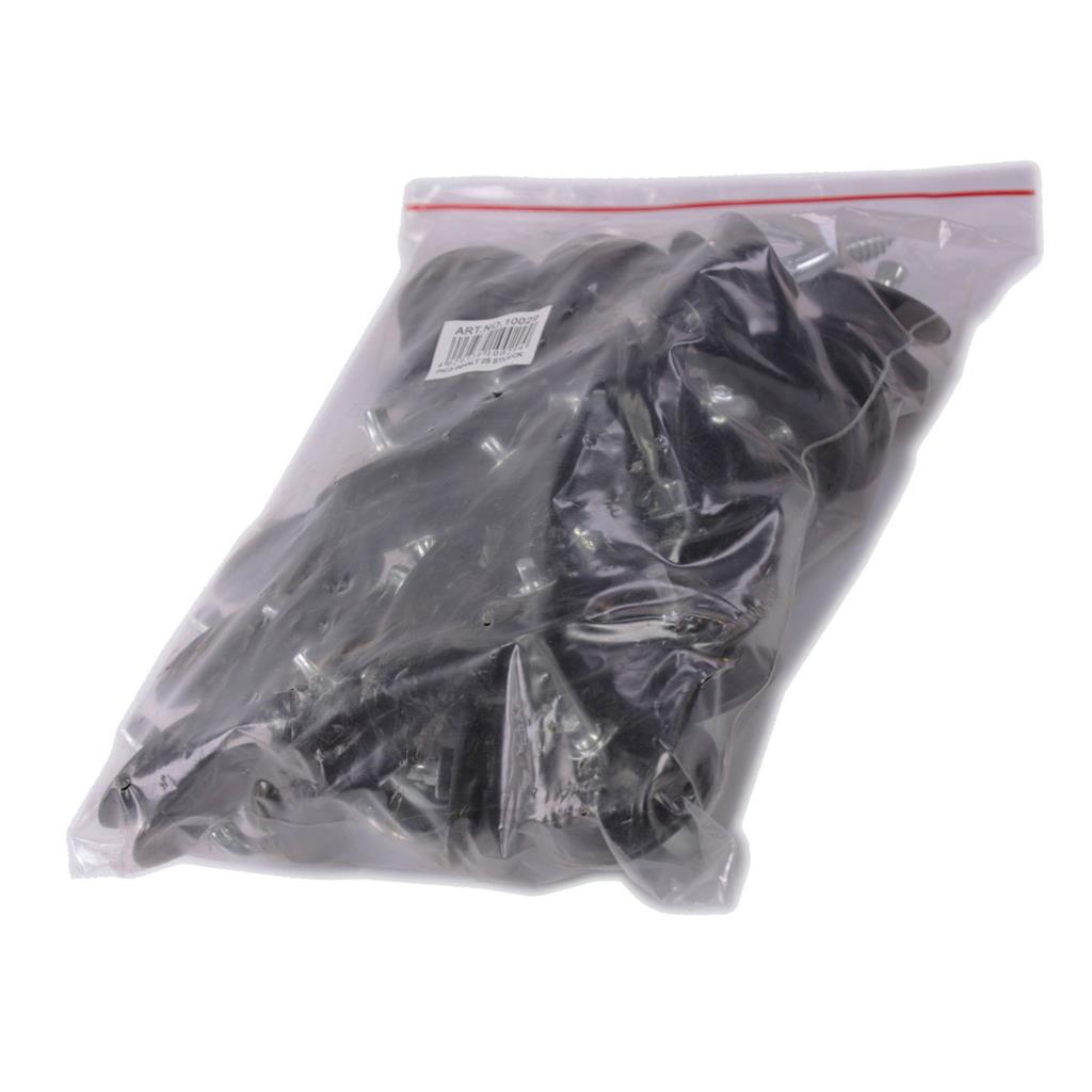 Die Seilisolatoren »Classic« 25x, für Seil, Litze sind schwarz. Wetterfest, UV-stabilisiert. Seilisolatoren mit verz. Eisenstütze 6mm, Holzgewinde, Beutel à 25 Stück