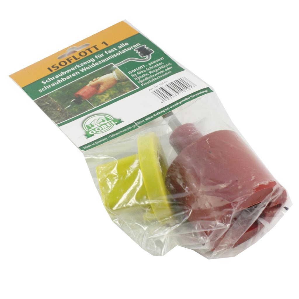 Der Einschrauber »Isoflott®« für Isolatoren mit & ohne Stütze ist ein Schraubwerkzeug für fast alle schraubbaren Isolatoren. Robust und für den täglichen Einsatz am Weidezaun konzipiert ist die Isoflott Einschraubhilfe ein Profiwerkzeug für professionelle Weidezaunbauer. Die Isoflott ist passend für Akku-Schrauber und Bohrmaschinen jeder Bauart und wird einfach wie "Bohrfutter" eingespannt. Zwei unterschiedliche Aufsätze ermöglichen den Einsatz als Einschraubhilfe für Isolatoren mit Stütze und als Hilfe zum Einschrauben von Isolatoren ohne Stütze.