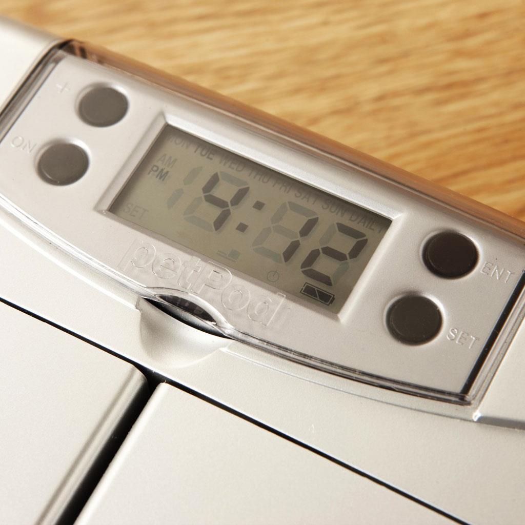 Der Futterautomat Katze »PetPod« 24/7 ist programmierbar und ist 2x200g groß. Der am besten für Katzen und Kätzchen geeignete stilvollepetPod enthält einen leicht lesbaren LCD-Bildschirm und eine 24/7-Programmierfunktion, mit deren Hilfe sich die Futterzeiten einstellen und Nahrung und Medikamente sicher und zeitnah abgeben lassen. Batteriebetrieben, inkl. 2 geschirrspülfeste Futterbehälter, von denen jeder 200g Trockenfutter fasst.