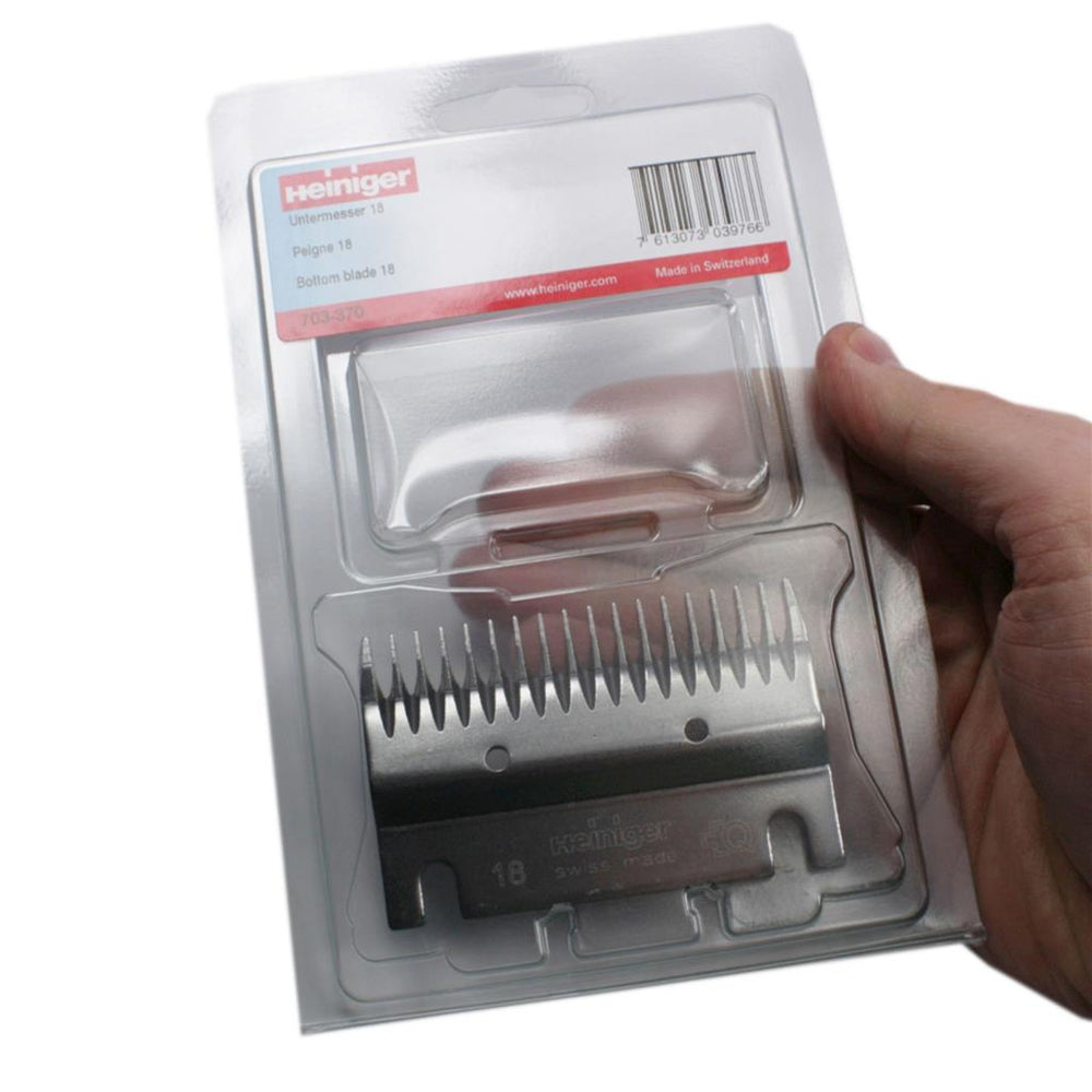 Heiniger 703-370 Untermesser 18 Zähne. Heiniger Schermesser für die professionelle Schur. Aus Spezialstahl gefertigte Schermesser mit langer Haltbarkeit. Mehrmaliges Nachschleifen ist mit den Schermessern möglich.