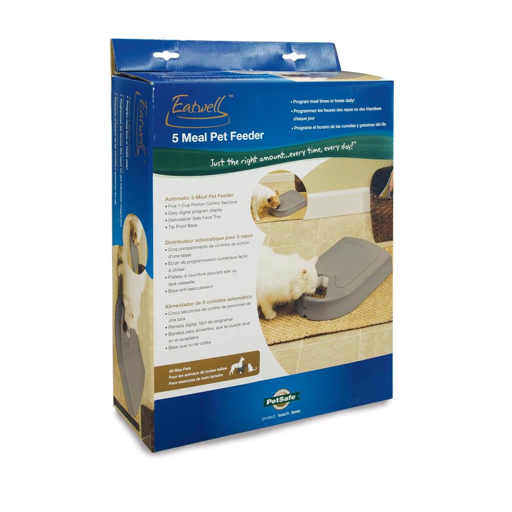 Dieser Katzenfutterautomat ist für Hunde und Katzen gleichermaßen geeignete. Das batteriebetriebene Gerät liefert Nahrung, Naschereien und Medikamente rund um die Uhr. Dank der leicht lesbaren LCD Anzeige und des geschirrspülerfesten Futterbehälters ist der Futterautomat benutzerfreundlich und leicht zu bedienen. Jede Schale fasst 230g Trockenfutter.