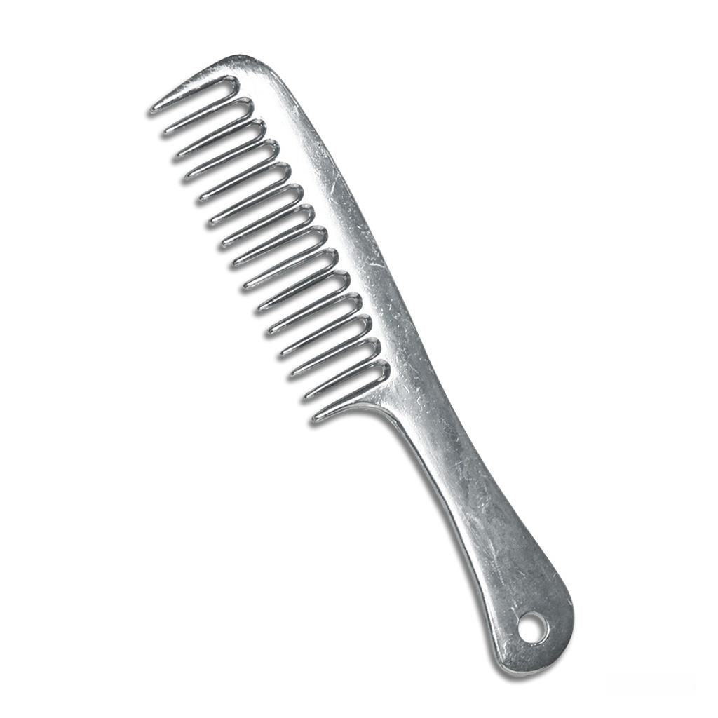 Der Mähnenkamm »Aluminium« zur Mähnenpflege ist silber und aus Aluminium.