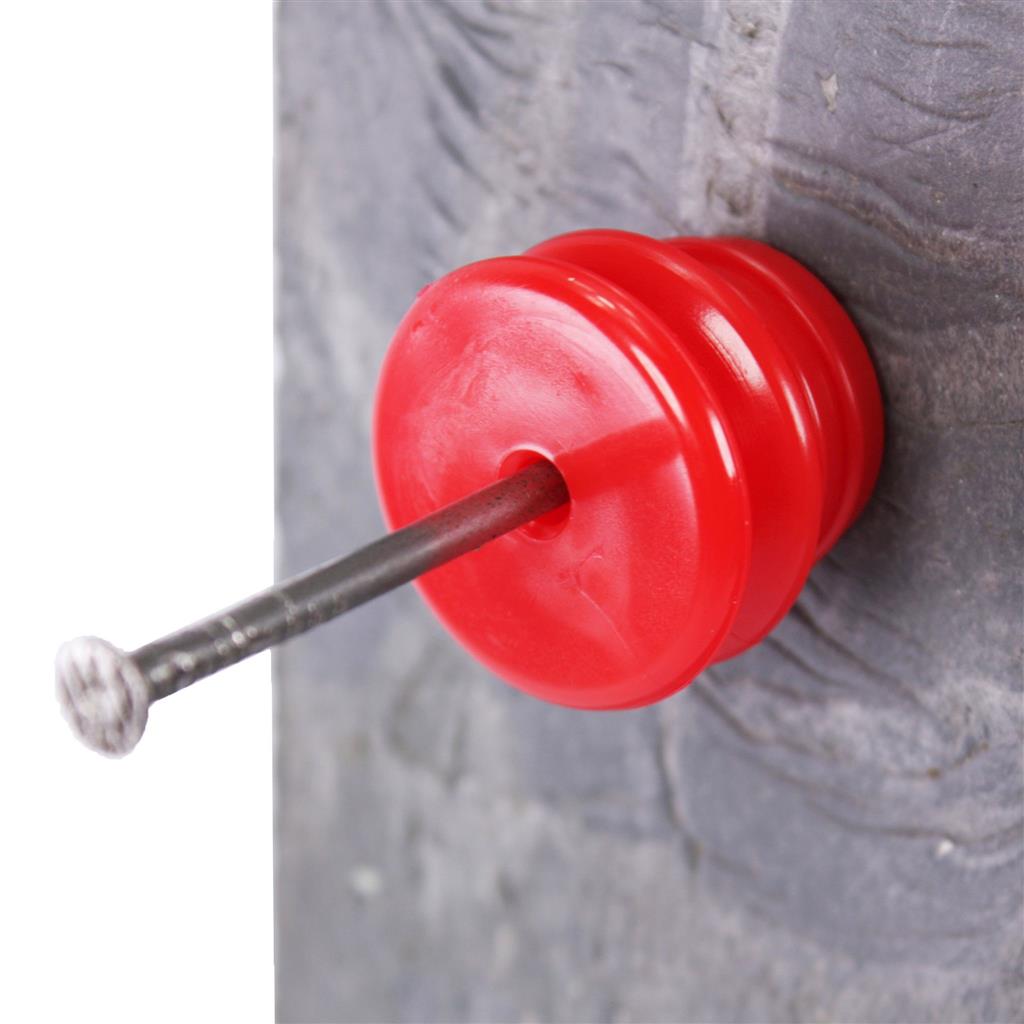 Die Nagel Weidezaun Isolatoren »Basic« 100x, für Litze u.a. zum Nageln sind rot. Wetterfest, UV-stabilisiert. Aus Polyethylen, Größe 30 x 22mm, Nagelloch 4,5mm, mit großer Regenablaufrille, Weidezaun Isolatoren Beutel à 100 Stück