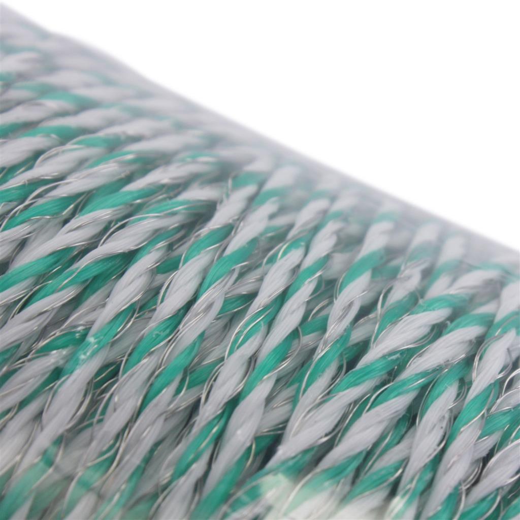 Die Weidezaunlitze »Torero« Kunststofflitze ist 500m lang (weiß-grün). Aus PE-Monofile 3x4 0,40mm (weiß), 3x1 0,40mm (grün). Die 5 Niro 0,20mm, 1 Cu 0,25mm Leiter machen die Weidezaunlitze »Torero« sehr niederohmig. Die Weidezaunlitze für Elektrozäune & Weidezäune haben einen super elektrischen Widerstand von: 0,25 Ohm/m mit einer Bruchlast von 90kg.