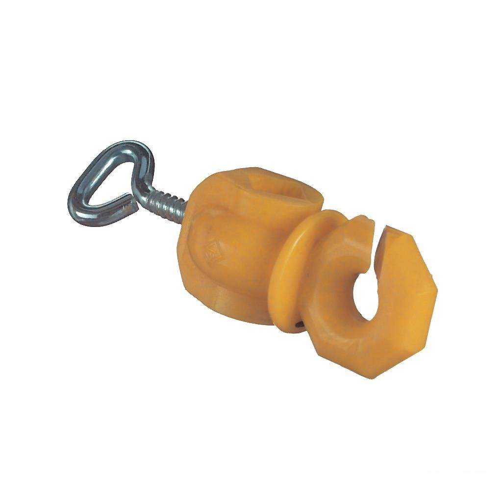 Der Zusatzisolator »Festellschraube« 25x, für Pfahl bis Ø 10mm ist gelb. Aus Polyethylen, mit Feststellschraube zum Fixieren am Pfahl, Beutel à 25 Stück Zusatzisolatoren